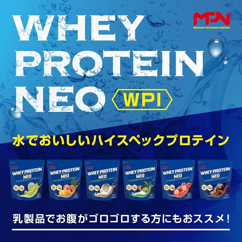 MPNらしい、「水でこんなにおいしい!」プロテインを実現。水でスッキリおいしく飲めます。製品情報